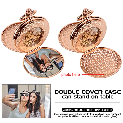 Specification: ManChDa Mechanical Roman Numerals Dial Skeleton Pocket Watches with Box and Chains for Mens Women