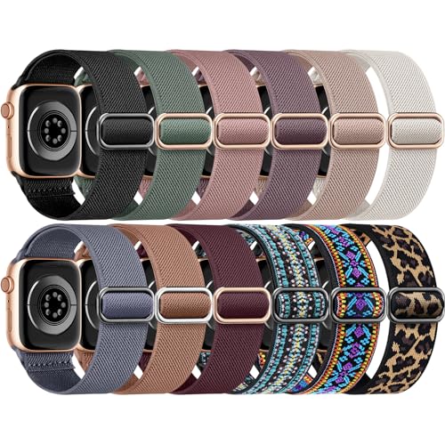 Specification: 12 Pack Stretchy Nylon Bands Compatible with Apple Watch Band 40mm 45mm 44mm 41mm 38mm 49mm 42mm for Women Men,Elastic Solo Loop Braided Straps for iWatch Band Series 9 SE 8 7 6 5 4 3 2 1 Ultra 2/1