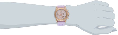 From the Marine Star Collection. Chronograph in stainless steel with rose-gold finish, lavender silicone bezel accents, patterned lavender dial, luminous hands and markers, calendar, small sweep, screw-back case, lavender silicone wave-pattern strap, and water resistance to 100 meters.
