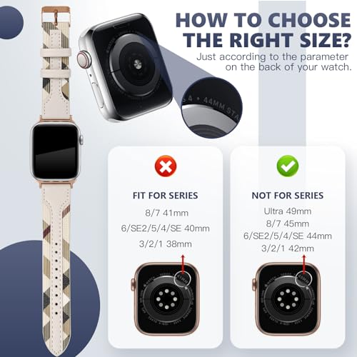 Specification: Designer Luxury Band Compatible with Apple Watch Band 45mm 44mm 42mm 49mm 38mm 40mm 41mm Women Men, Soft Leather Strap Replacement Wristbands for Apple Watch Ultra and iWatch 9 8 7 6 5 4 3 2 1 SE
