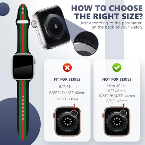 Specification: Designer Silicone Sport Band Compatible with Apple Watch Band, 38mm 40mm 41mm 42mm 44mm 45mm 49mm, for Men & Women, Soft Silicone Wristband Replacement Strap, iWatch Sport Band for Apple Watch Series 8, Apple Watch Ultra and iWatch 7/9/6/5/4/3/2/1/SE