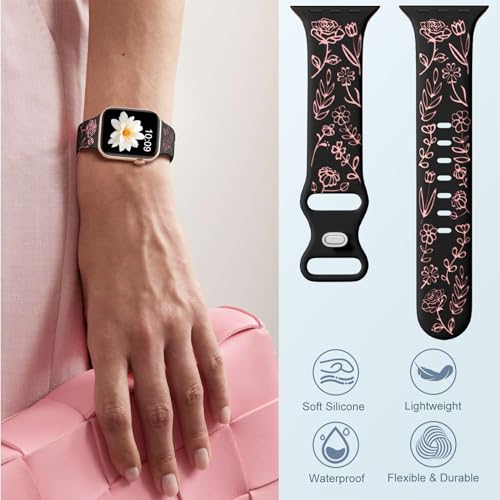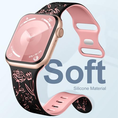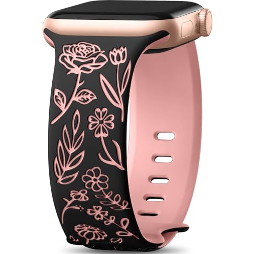 Specification: Easuny Floral Engraved Bands for Apple Watch Women 38mm 40mm 41mm 42mm 44mm 45mm, Soft Silicone Cute Dressy Wrist Strap for iWatch SE Series 9 8 7 6 5 4 3 2 1 Ultra, iPhone Watch Band Accessories
