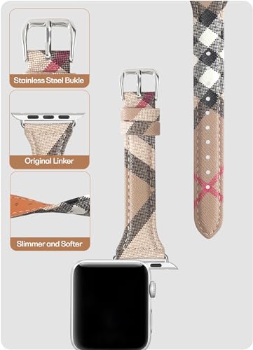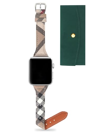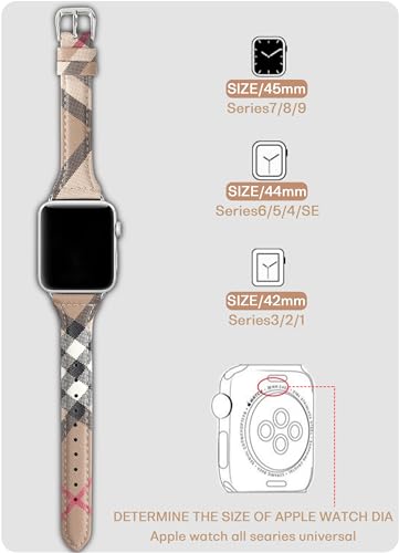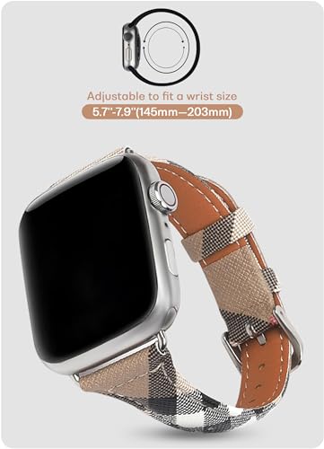 Specification: Leather Watch Band Compatible with Apple Watch Bands 45mm 44mm 42mm 41mm 40mm 38mm, Luxury Designer Classic Beige Plaid Watch Band Compatible for iWatch Series 9/8/7/6/5/4/3/2/1/SE Women¡