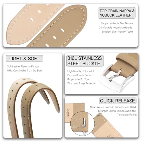 Specification: Leather Watch Bands Strap Quick Release, Elegant & Soft Top Grain Genuine Leather Watch band for Men Women, 22mm 21mm 20mm 18mm 16mm Replacement Straps for Watch & Smartwatch