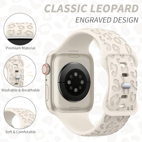 Leopard Engraved Band Compatible with Apple Watch Bands 38mm 40mm 41mm Women Men, Sport Replacement Wristbands for iWatch Bands Ultra2 Series 9 Ultra 8 7 6 5 4 3 2 1 SE