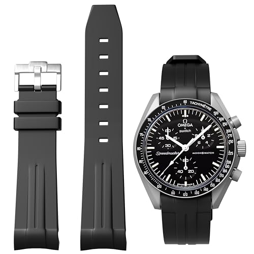 MoonSwatch Speedmaster 20mm Curved Strap – Premium No Gap Silicone, Waterproof Replacement Band Compatible with Omega x Swatch, Rolex, SEIKO – Durable, Comfort Fit for Men & Women