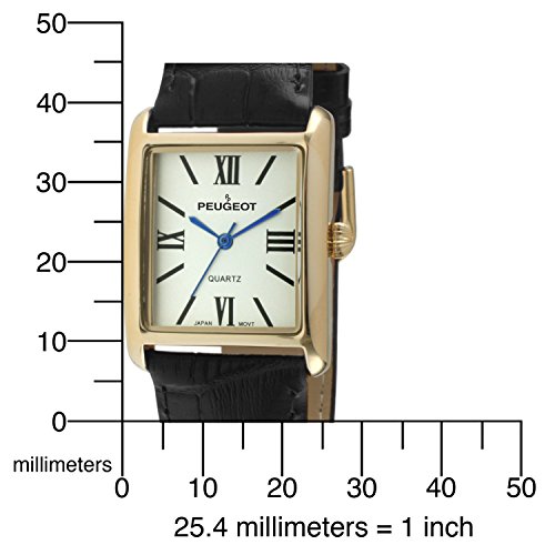 Specification: Peugeot Women’s 14K Gold Plated Tank Leather Dress Watch with Roman Numerals Dial