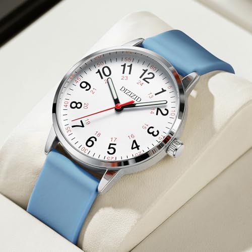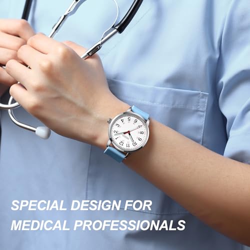 Nurse Watch for Medical Professionals and Students, Military Time Waterproof Luminous Easy Read Dial, 24 Hour with Second Hand, Colorful Silicone Band, Wrist Watches for Women, Men, Doctors