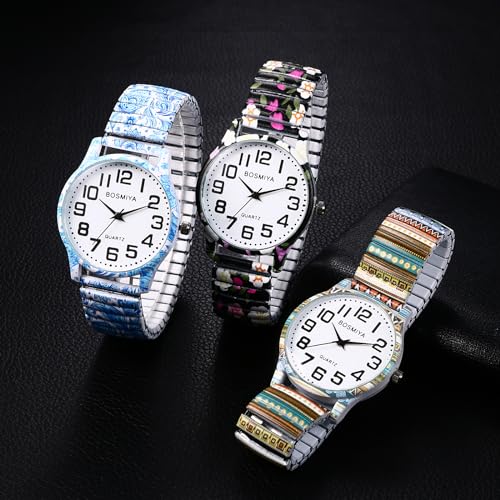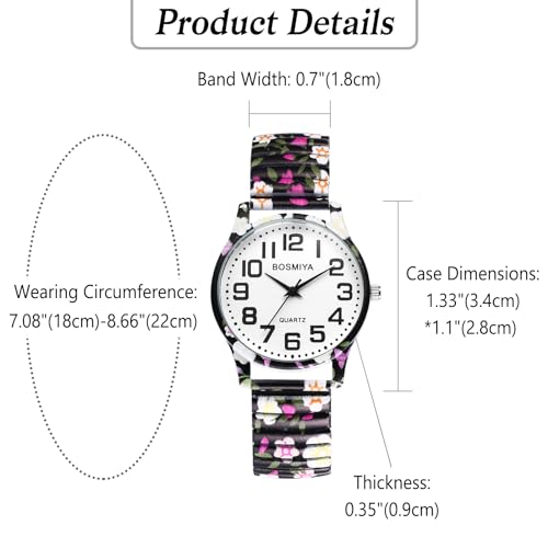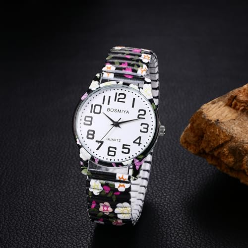 Specification: OIDEA Stretch Band Watches for Women: Bohemia Flower Easy Reader Elastic Band Watch Large Face Big Number Analog Quartz Bracelet Watch Expansion Band Wristwatch