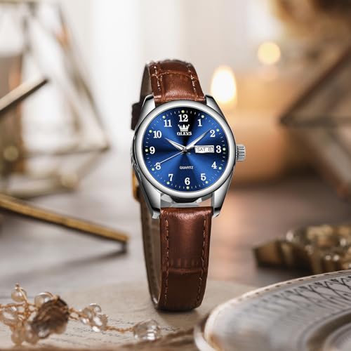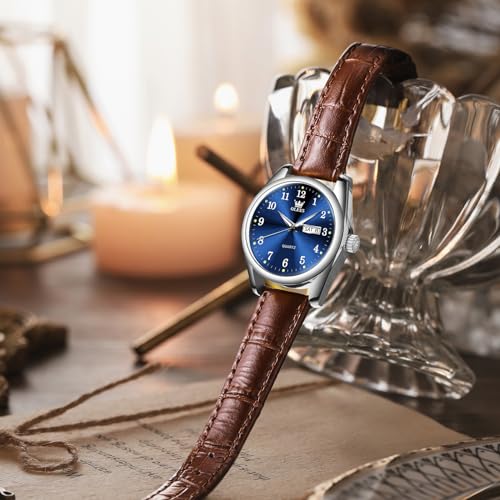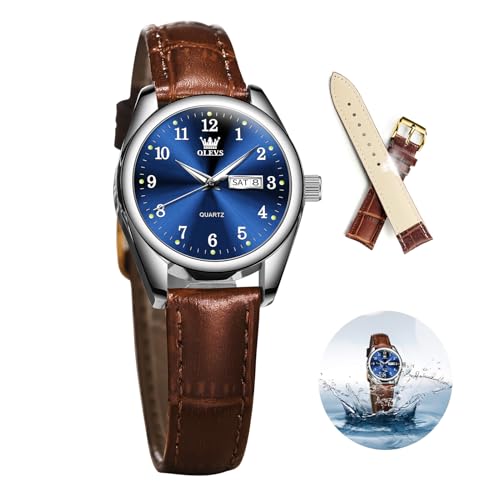 Specification: OLEVS Classic Leather Watches for Women, Business Dress Diamond Roman Arabic Numerals Ladies Watches, Day Date Waterproof Analog Quartz Womens Wrist Watches Brown Leather Strap Relojes para Mujer
