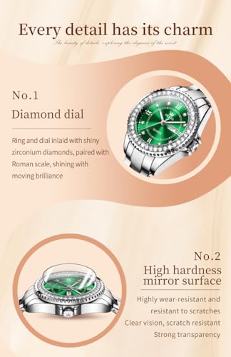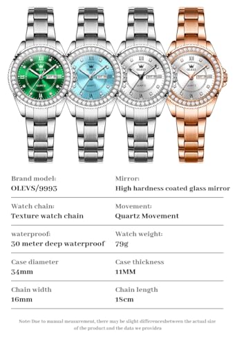 Specification: OLEVS Watches for Women Diamond with Date Luxury Leather Female Waterproof Women Wrist Watch Analog Dress Stainless Steel Ladies Watch Luminous Calendar Women Watch Green/Silver/Red Dial