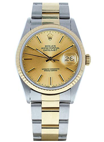 Specification: Rolex Men’s Datejust Model 16233 Steel & 18k Gold Oyster Band Champagne Stick Face (Certified Preowned)