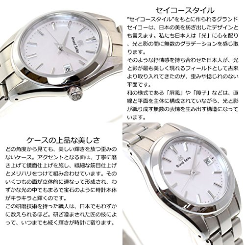 A women’s quartz model with a white mother of pearl dial adds an elegant shine. A quartz model that has been finely crafted to suit women’s hands even as keeping up high basic performance and functional attractiveness as Grand Seiko. Expertly constructed with two contrasting pieces for a good looking mirrored finish without distortion and a detailed textured surface. The white sea oyster used at the dial is a subtle glow that looks depending at the angle, creating a delicate and sublime impression. Caliber: 4J52 / Battery Life: Approx. 3 years / Accuracy: Annual difference ± 10 seconds / Reinforced water resistance for on a regular basis use (10 ATM), Back case with lion crest / White butterfly dial / Calendar (date) serve as / Screw back / Magnetic resistance type / Made in Japan / Arm circumference (maximum): Approx. 7.3 inches (18.5 cm).