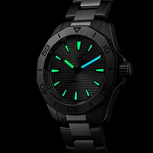 An very important ally to your achievement, the TAG Heuer Aquaracer has the whole lot you want to triumph over your personal limits. With a steel case, technical dial and built to live on the most extreme environments, this watch is… in a position for any challenge. Stand out with a silver sunray brushed dial showing a bold horizontal pattern with black indexes and hands for optimal legibility. Tremendously versatile, the 40mm steel case features brushed and polished surfaces. It also sports premium case ergonomics and finishing, and a tapered steel bracelet with double safety push buttons with comfort extension link. Powered by an accurate Swiss quartz movement and water-resistant to 200M, this TAG Heuer Aquaracer is life-proof. Receive our exclusive packaging and a complimentary TAG Heuer shuttle pouch when buying this watch at the official TAG Heuer web page. Size 40 mm Water resistance 200 m Case Steel Fine-Brushed/Polished Bezel Turning Bezel Steel Material Steel Finishing Fine-Brushed/Polished Buckle Folding Clasp Push-Buttons – Steel Color Grey Caliber Quartz Movement Quartz Watch Functions Hours, Minutes, Seconds WBP1111.BA0627