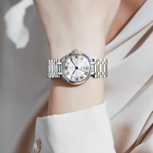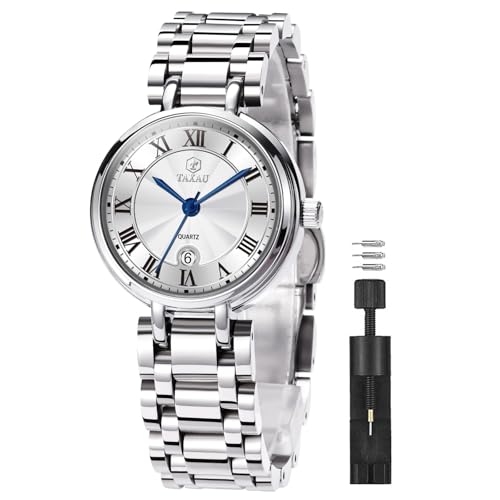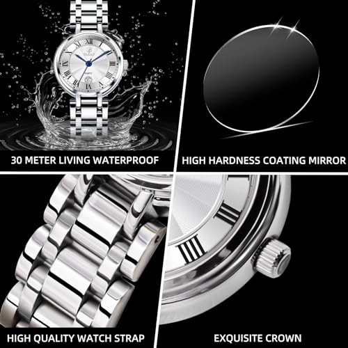 Specification: Waterproof Watches for Women, Dainty Women’s Wristwatches for Small Wrist Analog Quartz Stainless-steel Women Watch Business Dress Minimalist Watch with Roman Number Date Silver Gold Band for Ladies