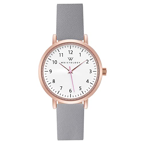 Wristology 29 Styles Mini Numbers Watch Leather Band – Interchangeable Genuine Leather Strap – Easy to Read Petite Small Size Analog Nurse Watch with Second Hand for Women, Men, Nurses, Teachers
