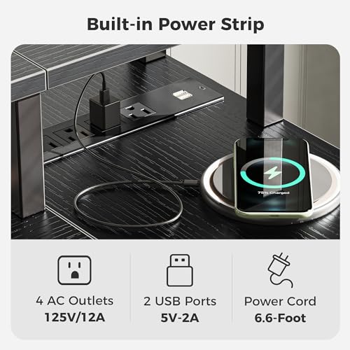 【Power Strips & Monitor Shelf】This computer desk is equipped with 4 Standard Plug Outlets & 2 USB Ports, which can easily charge phones laptops, gaming gear and other office devices. Monitor stand on the desktop elevates your line of sight, allowing you to maintain proper sitting posture and protect your cervical and spinal health.