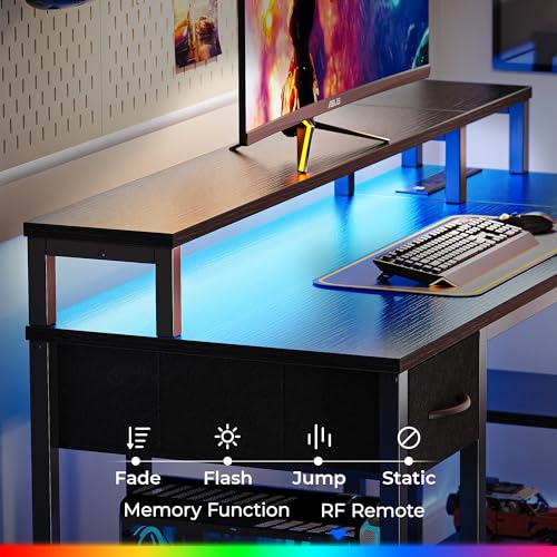 SUPERJARE 53 inch Reversible L Shaped Desk with LED Lights & Power Outlets, Computer Desk with Shelves & Monitor Stand, Gaming Desk with Drawer, Home Office Desk Corner Desk, Black
