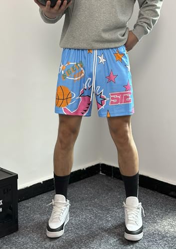 DIOTSR Mens Graphic Basketball Shorts Drawstring Running Workout Shorts Summer Cool Casual Shorts