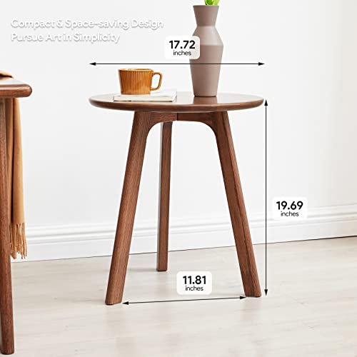 End Table – Round End Table with 3 Legs, 100% Natural Solid Wood Side Table for Living Room, Eco-Friendly Painted Small End Table for Bed Room Kid’s Room Sofa Patio, Simple Assembly